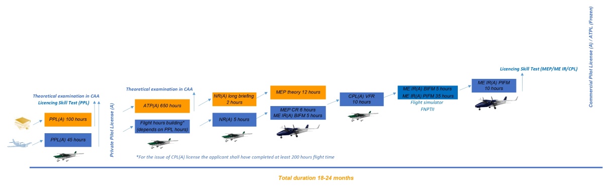 ATPL iesaldēts. Privātā pilota licences (PPL) studenta sagatavošanas soļi komercpilota licences (iesaldētā ATPL) iegūšanai.